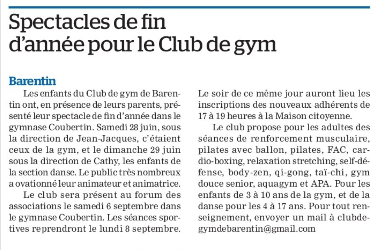 Le Club de Gym à l’honneur
